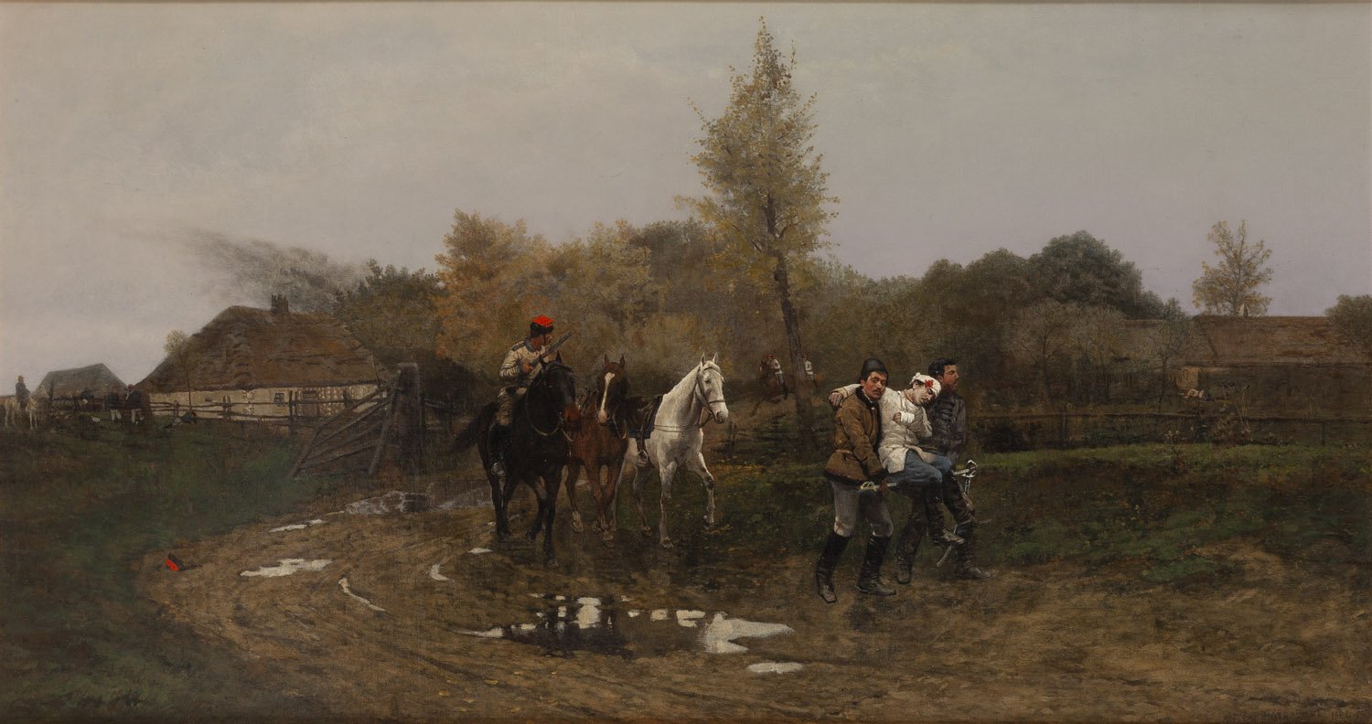 "Powstańcy z rannym towarzyszem", 1881