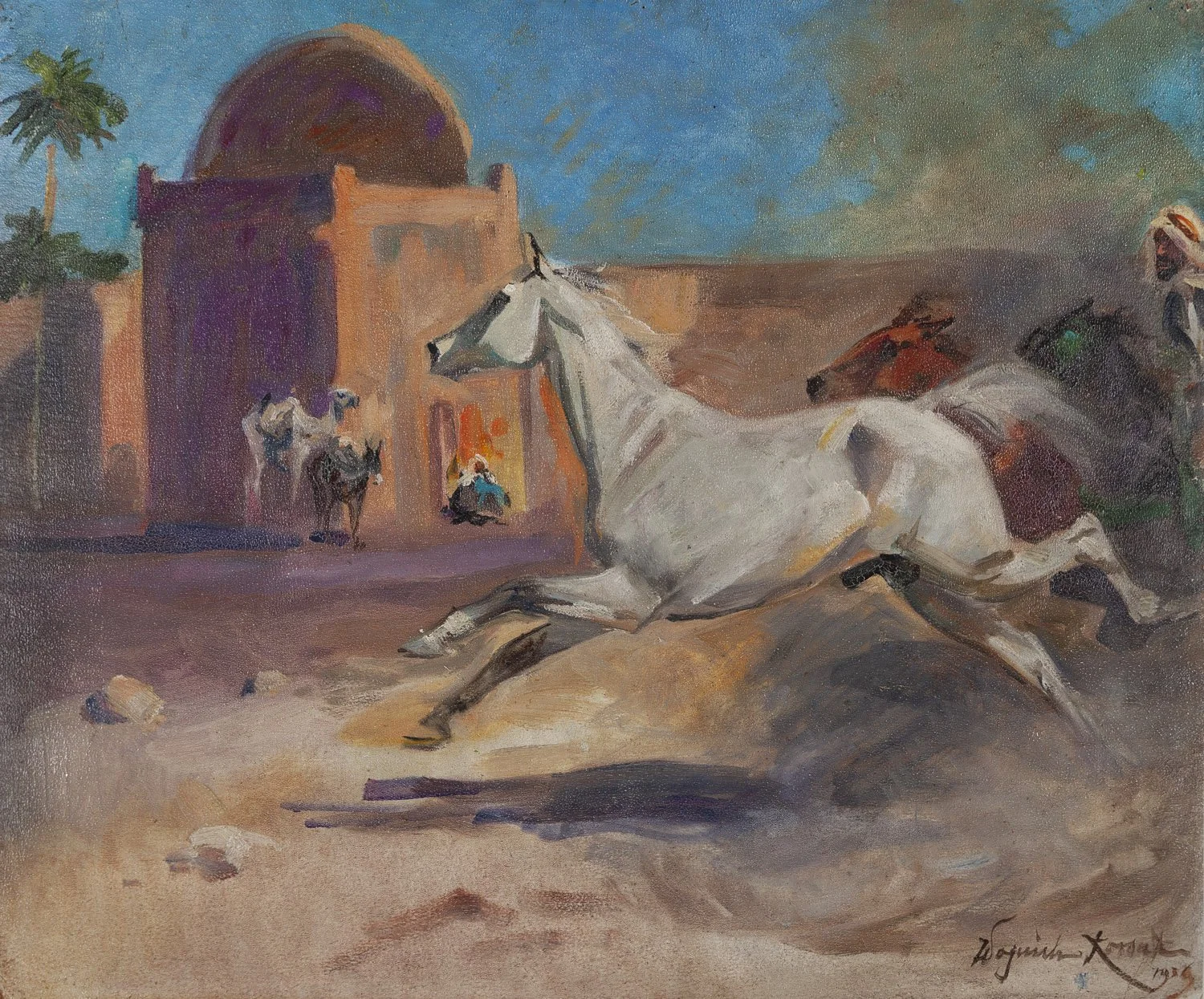Galopujące konie na tle miasta Fez, 1939