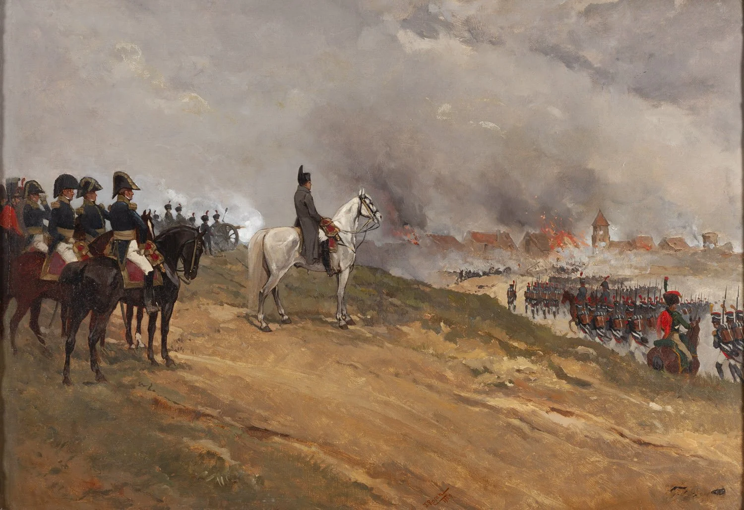 Napoleon i jego wojsko oglądający płonące miasto, 1909