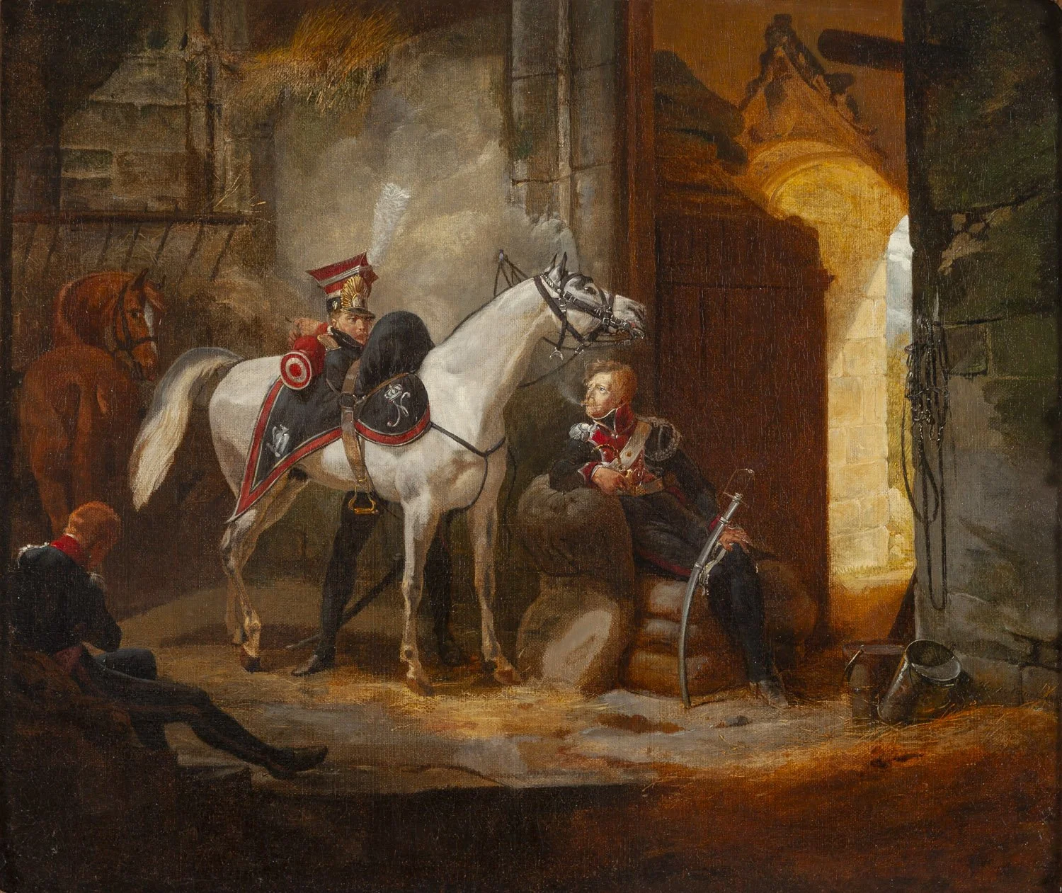 "Wnętrze starego zamku służącego Polakom dołączającym do armii za stajnię", 1812